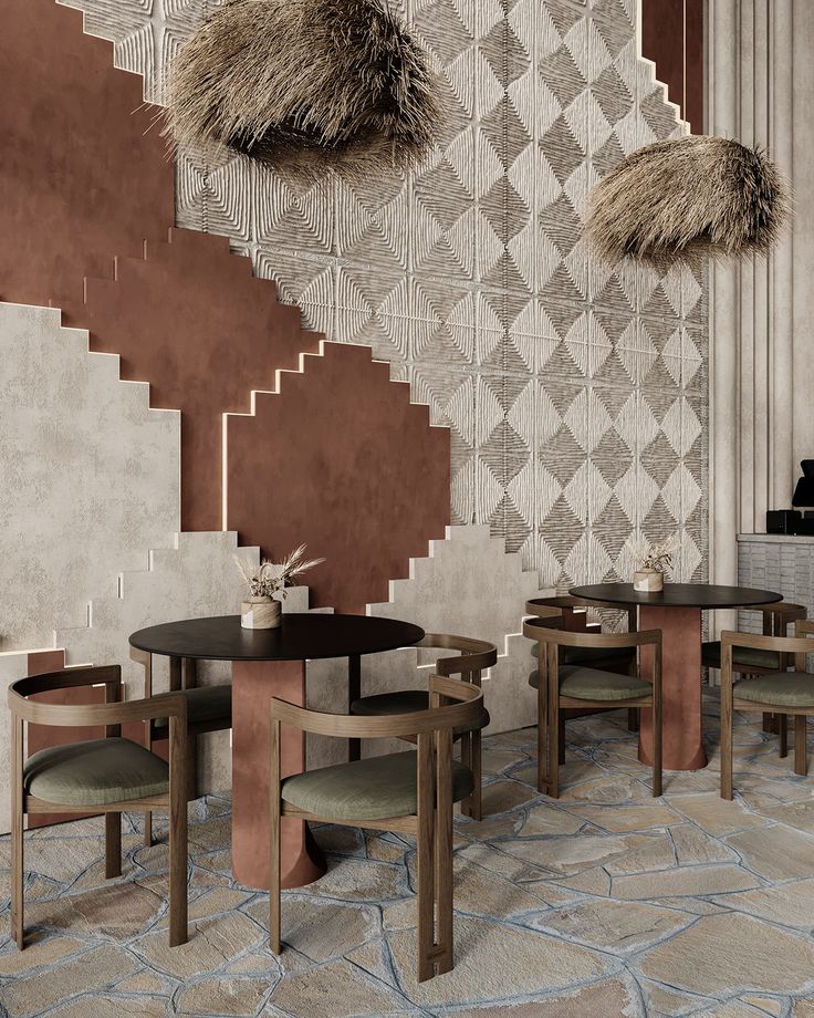 Colors reflect the overall mood, materials express the level of quality, and decorative details add depth and a sense of identity. Even the arrangement of tables and the flow of pathways within the space play a role in creating a comfortable and balanced experience.