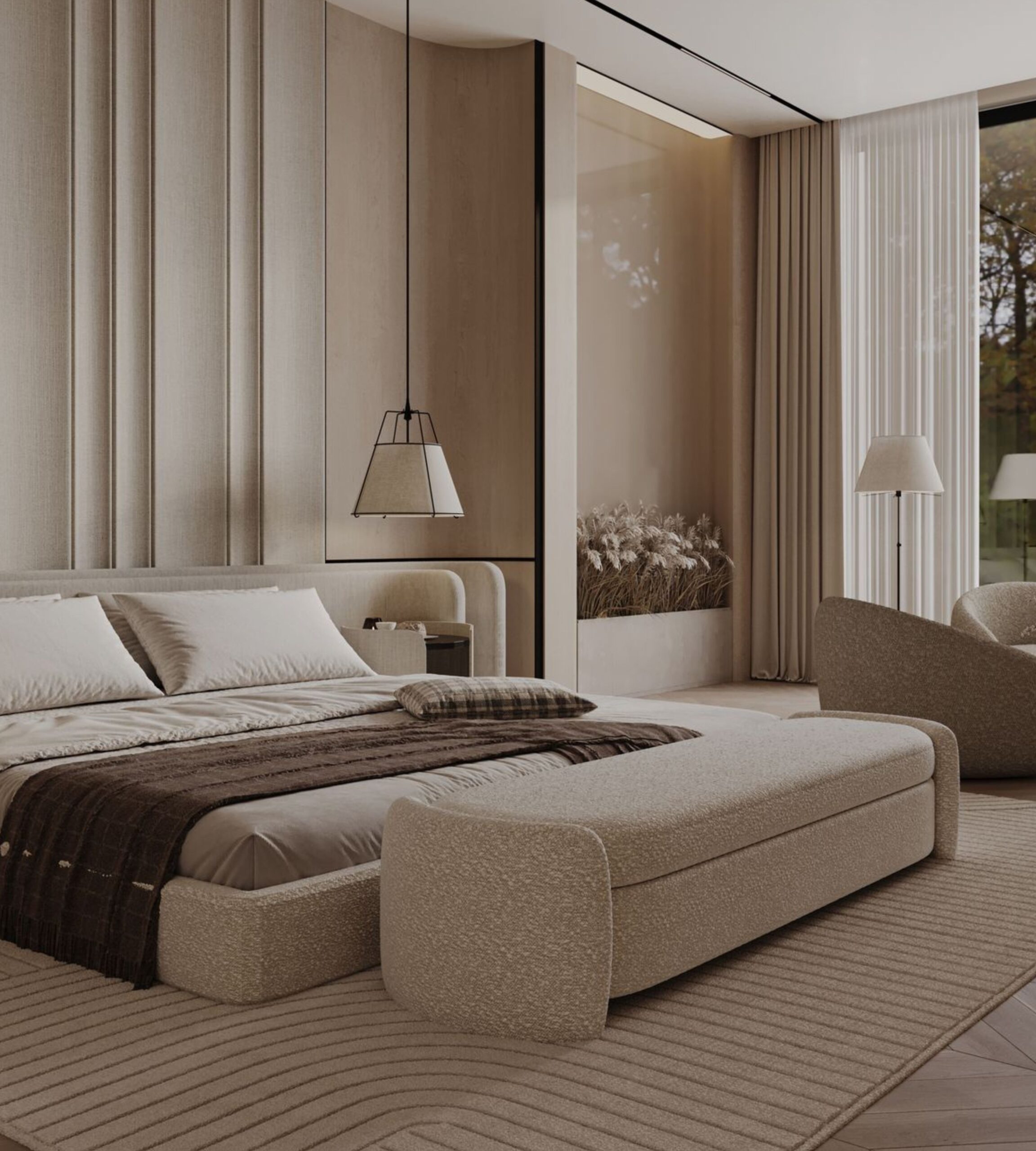 • Comfortable materials and textures that add warmth and visual balance.