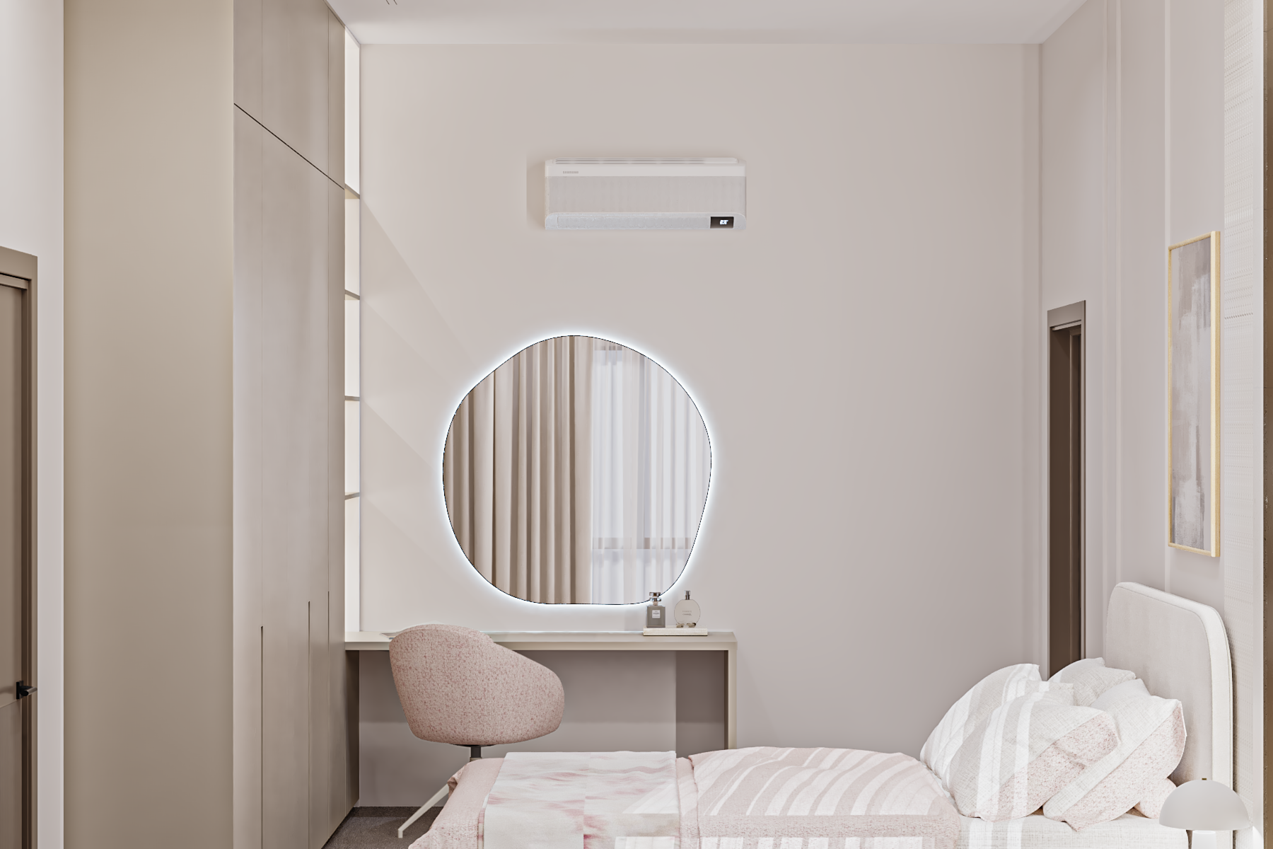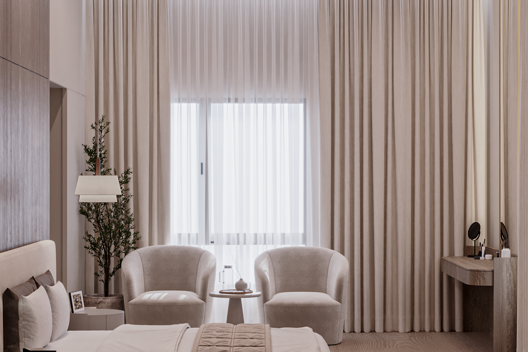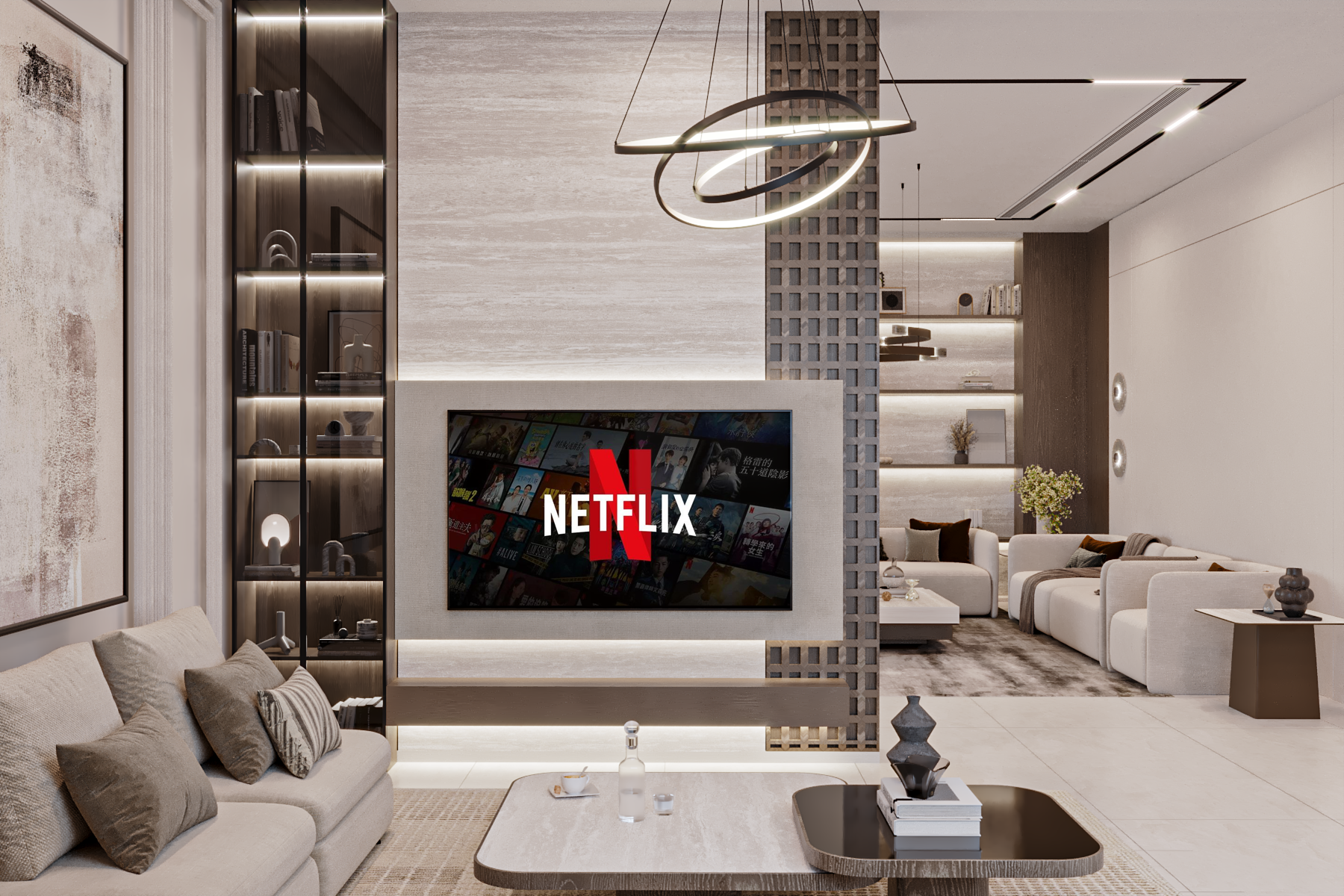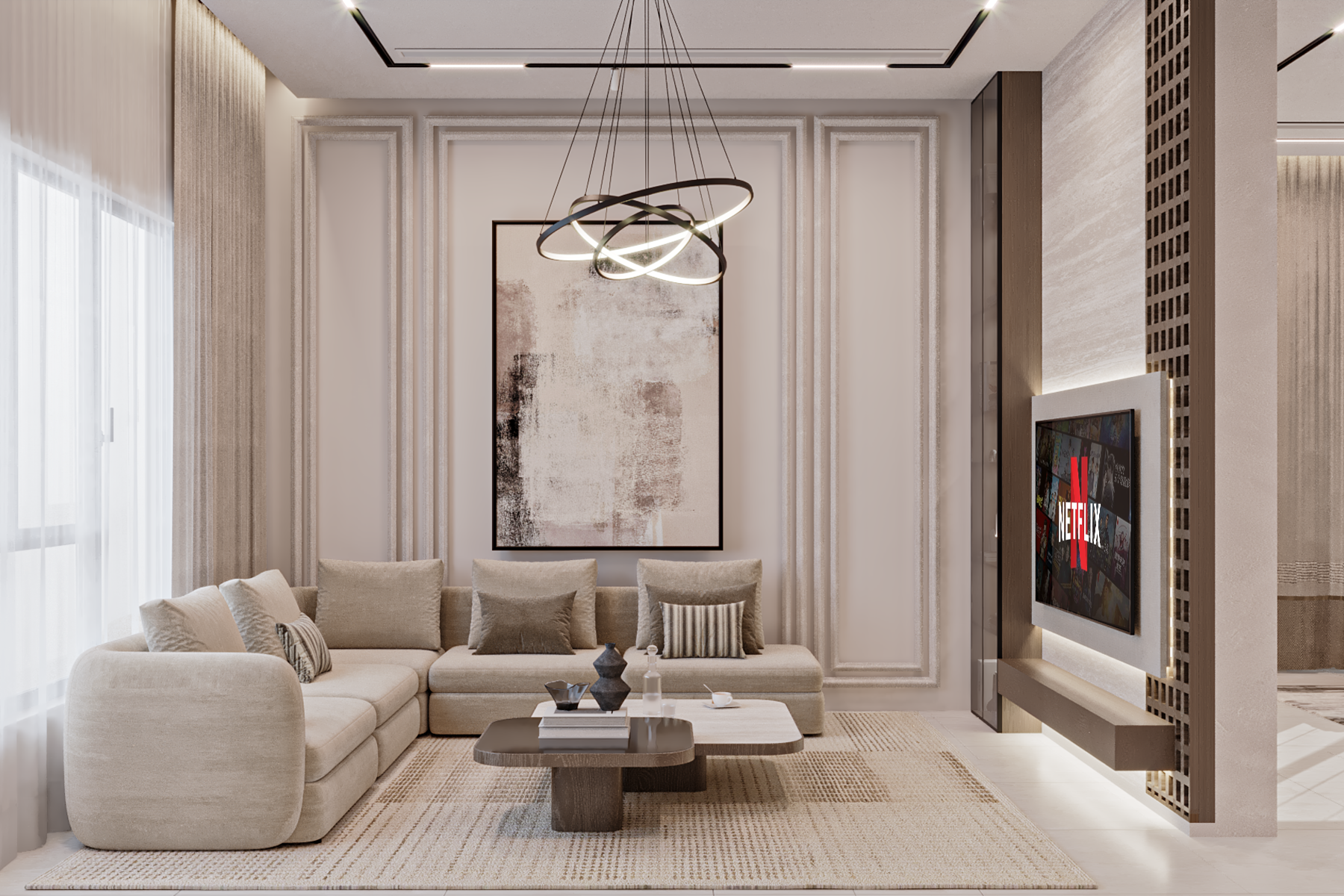 A harmonious palette of neutral tones, layered textures, and bespoke lighting details shapes interiors that feel both sophisticated and inviting, creating a timeless residential environment defined by comfort, balance, and understated elegance.